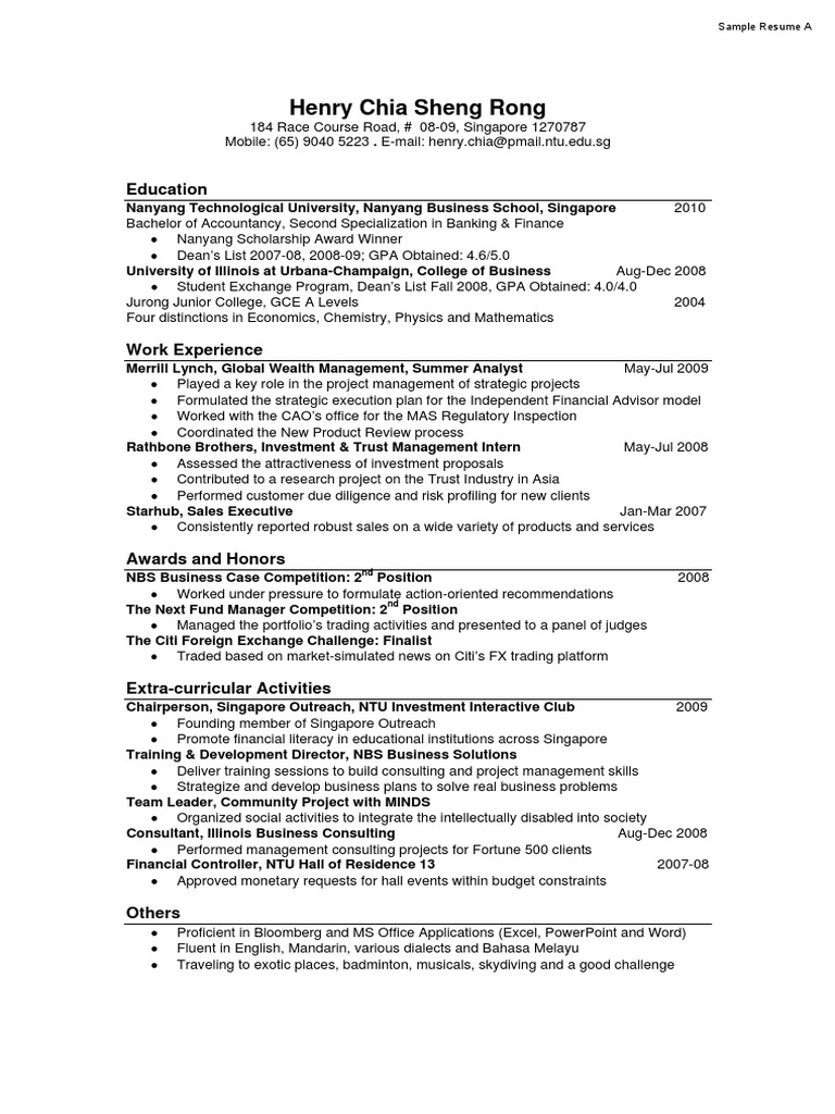 Resume Template 5 Pdf Singapore World Politics
